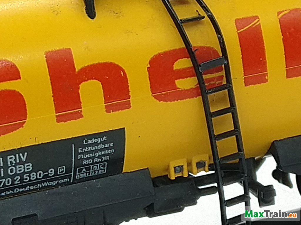 Üzemanyag szállító tartálykocsi. Sérült, hiányos. Egy ütköző hiányzik,létrák sérültek. Doboza nincs.